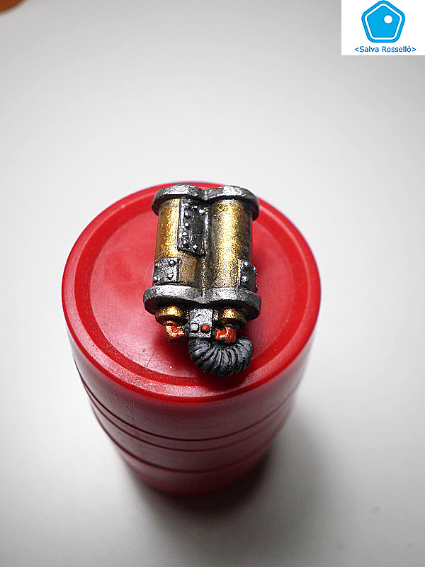 azul, metalizándolos con el médium metálico, y con lavados en negro, ya que el