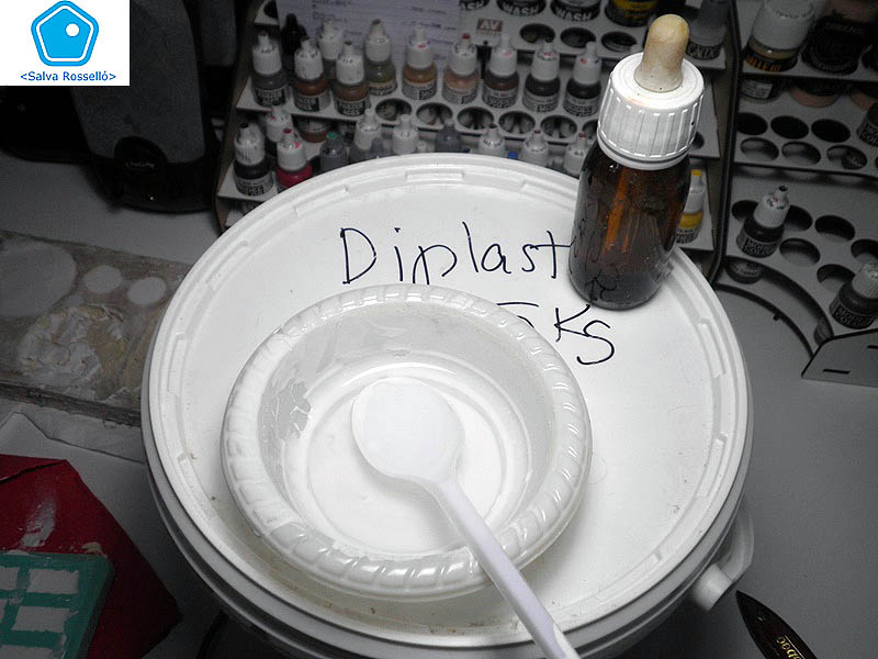 Para la masilla he utilizado Diplast, agua, un recipiente y
